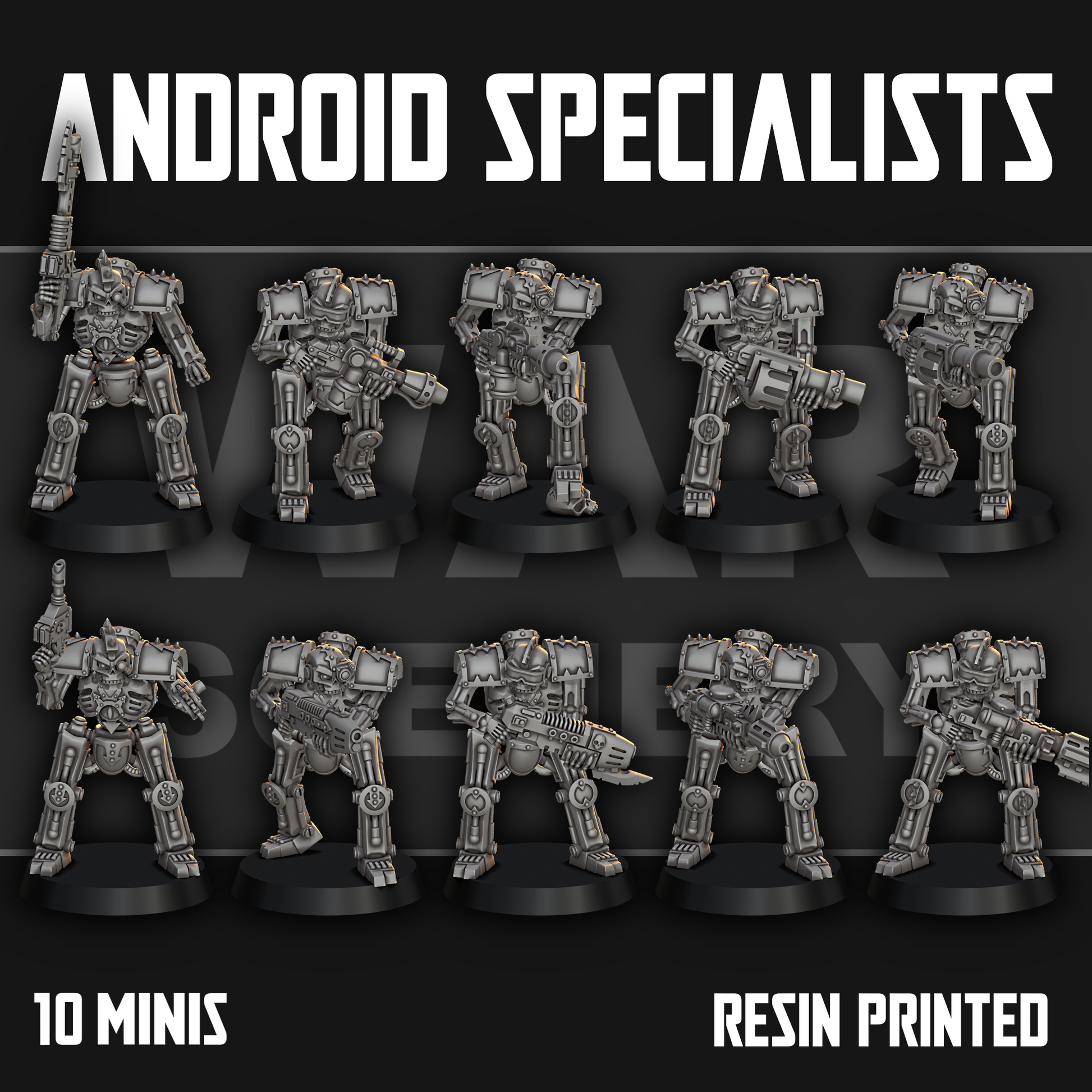 Chaos Android Specialists von War Scenery sind aus Resin 3D-gedruckte Miniaturen für 28mm Tabletopspiele.